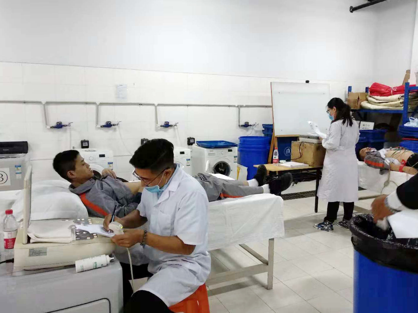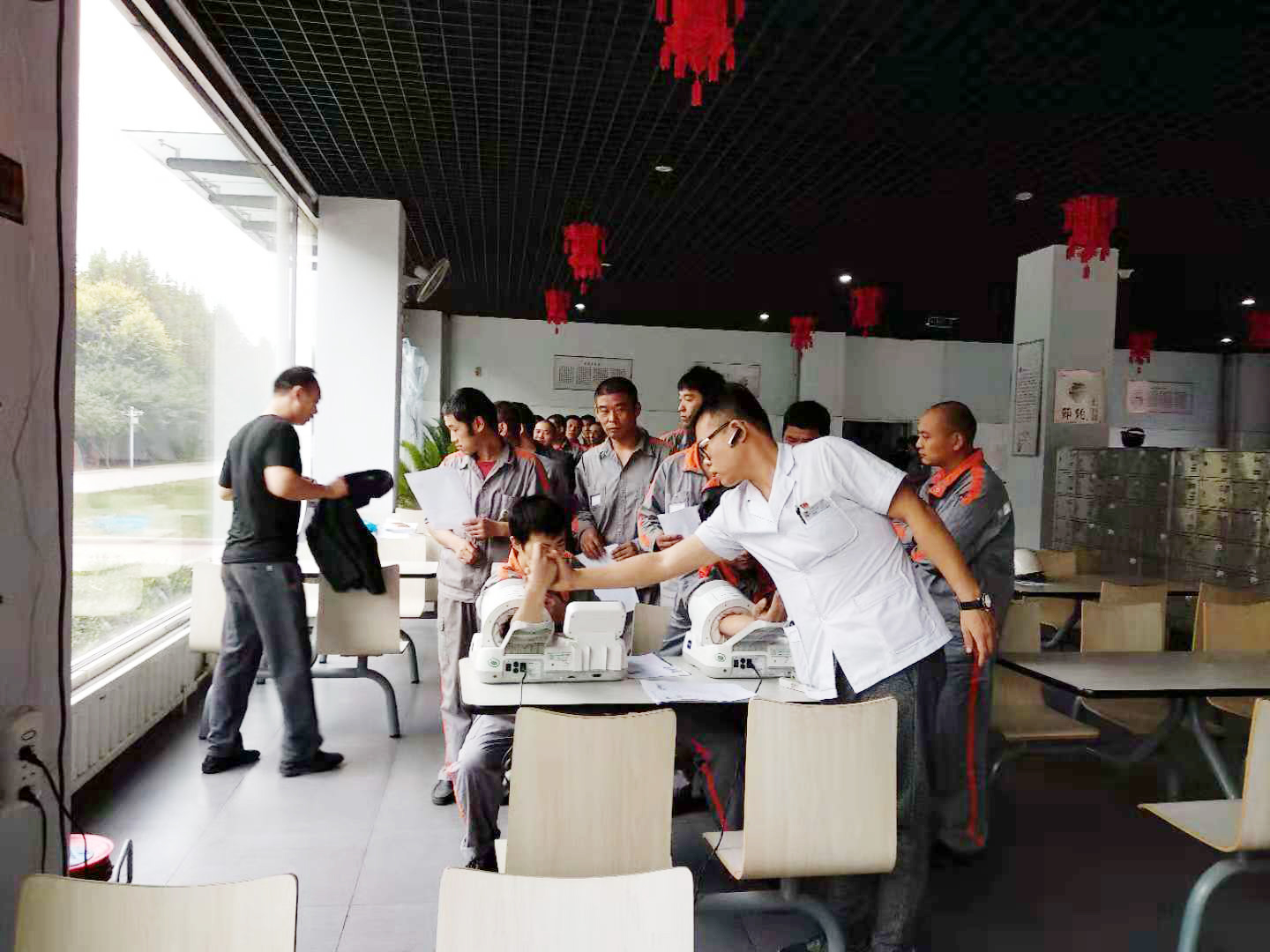 27日上午8点半,来自天津市的体检中心医护人员到达天津万搏官方在线入口-万搏(中国) 公司,行政部的席有志和邸占围负责接待体检中心医护人员并帮忙准备房间和器具,随着一阵快速而有效的工作,体检工作得以顺利的开展。