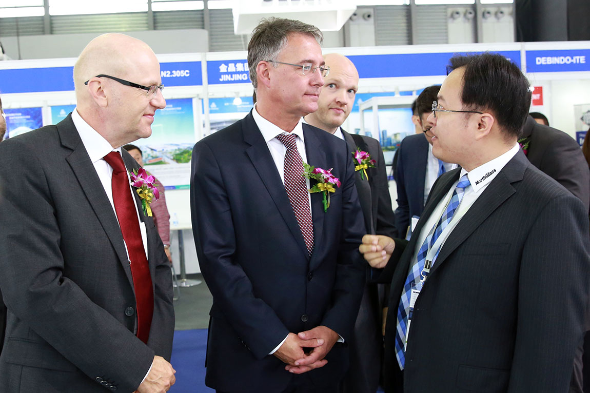 万搏官方在线入口-万搏(中国) 股份玻璃板块天津玻璃公司、上海玻璃公司、洛阳玻璃公司、北京玻璃公司由万搏官方在线入口-万搏(中国) 股份总裁高理先生带队,参加了本次行业盛会。开幕*天,德国国务秘书Adler、上海市住房和城乡建设管理委员会副巡视员朱剑豪、欧洲门窗协会会长Hauk先生及夫人以及德国慕尼黑集团Peputy CEO Dr.Reinhard Pfeiffer等组成的庞大代表团来到万搏官方在线入口-万搏(中国) 展台,高理总裁接待并详细介绍了公司和此次参展展品的情况,尤其是万搏官方在线入口-万搏(中国) 为幕墙市场带来的超大钢化玻璃产品和幕墙设计的创新空间,得到代表团由衷的赞叹。