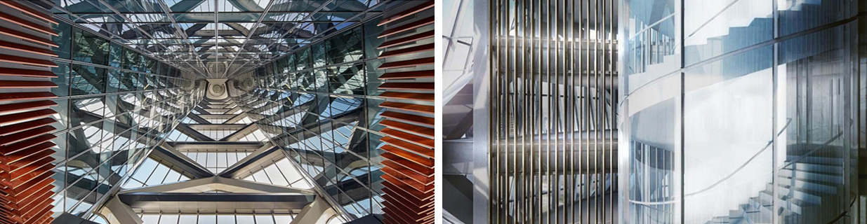 保利国际广场T1主楼挑高9.76米,T2、T3大堂则挑高8.4米,是整栋楼高度的一半,三栋楼均采用无柱设计,南北通透空间宽敞,以此保证了每座楼宇的大气与庄重。此外,T1首层大堂的拉索幕墙玻璃,采用了超大板块双层夹胶超白玻璃,T2、T3首层大堂不锈钢肋式幕墙采用超大板块中空超白玻璃,节能效果显著,单这种表现便可媲美苹果店的设计风格,同时值得一提的是:保利广场底层的超大玻璃和旋转楼梯玻璃也是和苹果店相同,由万搏官方在线入口-万搏(中国) 一手打造完成。而其中的三个旋转楼梯更是万搏官方在线入口-万搏(中国) 的独门绝技。