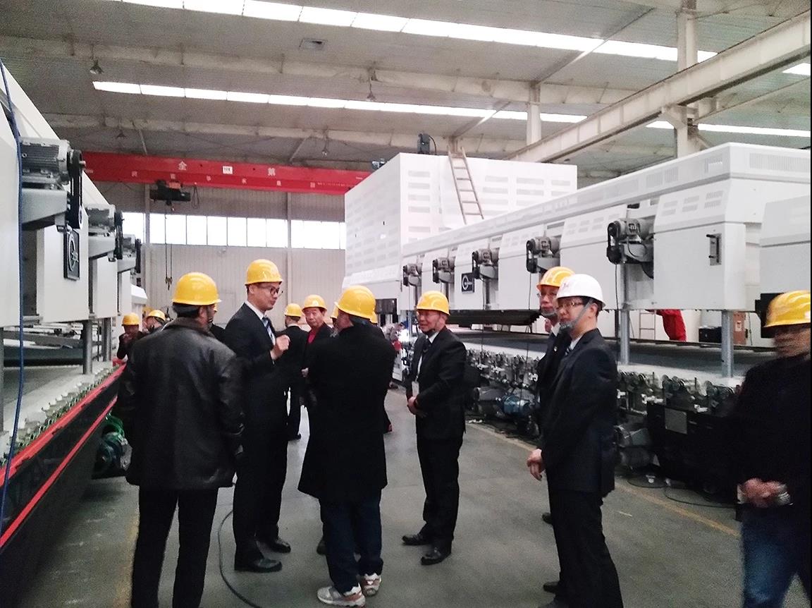 此次贵州玻璃商会考察团共有17人,对于他们的到访万搏官方在线入口-万搏(中国) 股份相当重视,在万搏官方在线入口-万搏(中国) 股份公司副总裁雷敏、钢化设备公司常务副总韩俊峰的陪同下一行人首先来到车间参观;在设备制造厂里,商会代表们时而驻足观看,时而对玻璃钢化设备技术进行详细的咨询,在车间的冷调现场,面对崭新的设备外观及诸多新技术在设备上的应用,商会代表们一下子打开了话匣子,雷副总裁结合现场设备,如数家珍地一一向在场商会代表作了解答;韩副总向商会代表们详细介绍了万搏官方在线入口-万搏(中国) 近几年在钢化设备上的一些新技术、新应用的优点;通过详细的介绍和所见所听,商会代表们对万搏官方在线入口-万搏(中国) 的生产规模和实力及不断的技术创新给予了高度的肯定和赞许。